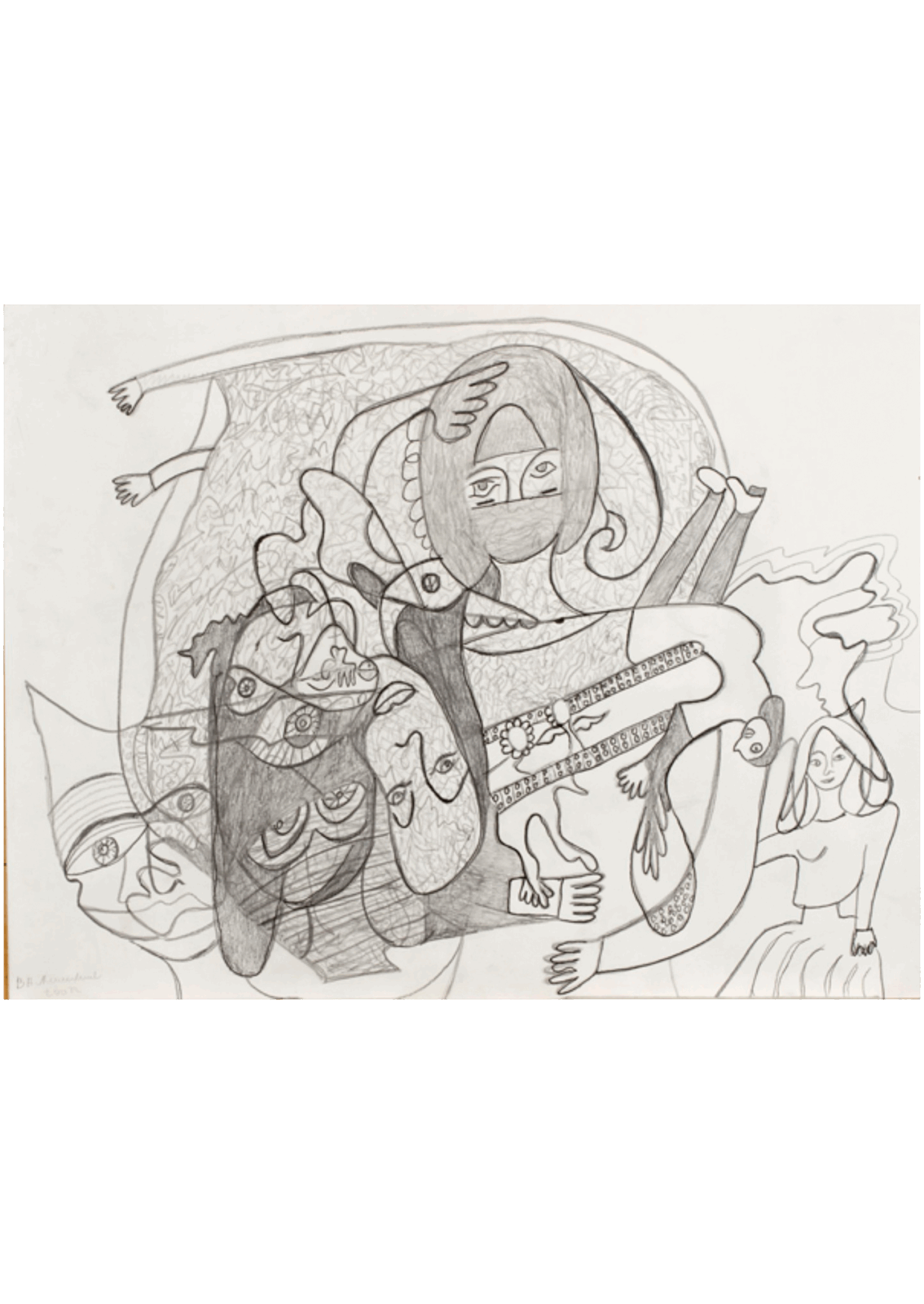 Vroeger gebruikte ze veel voorbeelden om na te tekenen, tegenwoordig tekent ze uit haar hoofd; Portretten, bloemen, tuinen, huizen, vazen en kerktaferelen. De voorstellingen die ze maakt vullen het gehele blad. De stijl die Bridget hanteert is zeer naïef en spontaan.