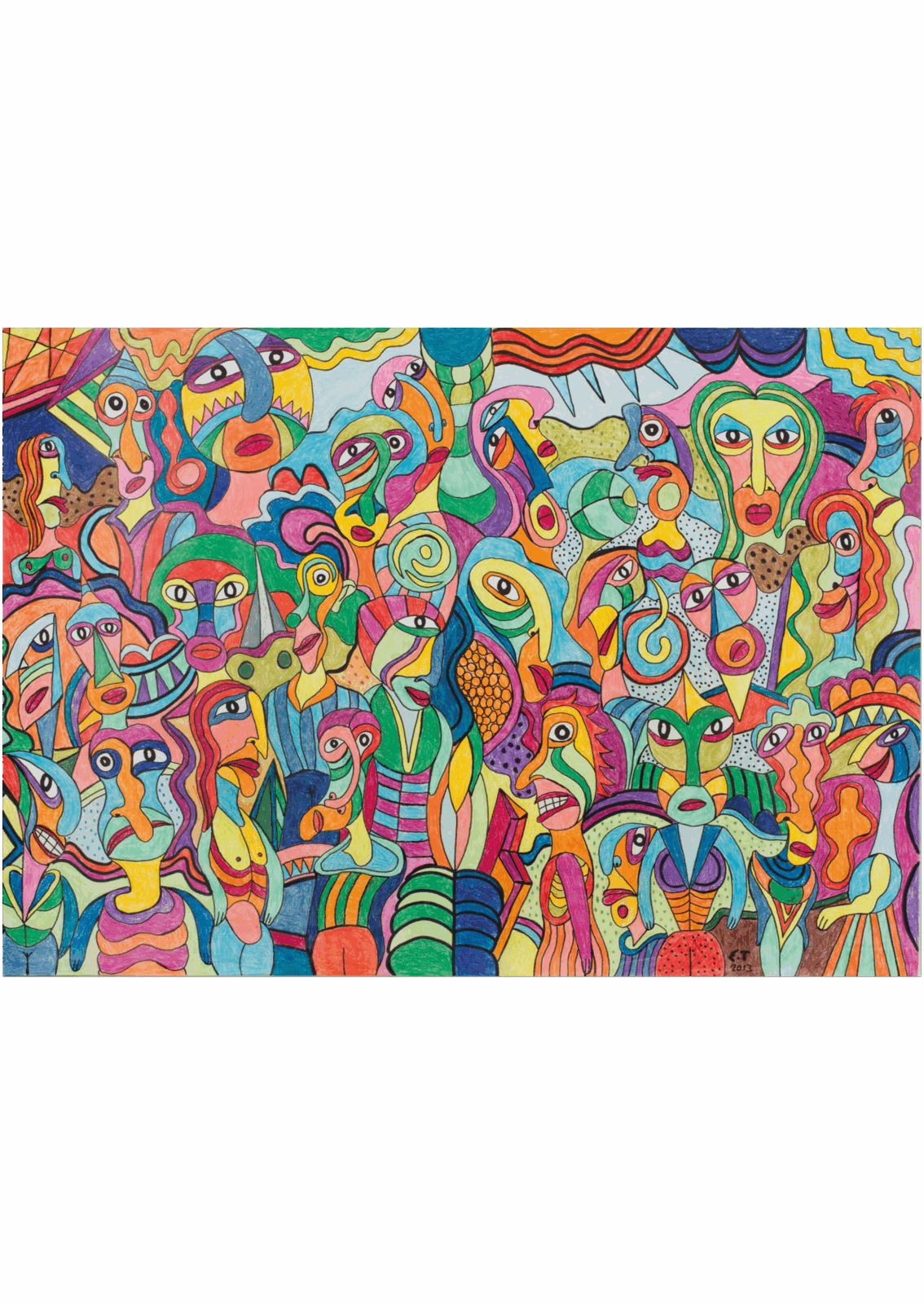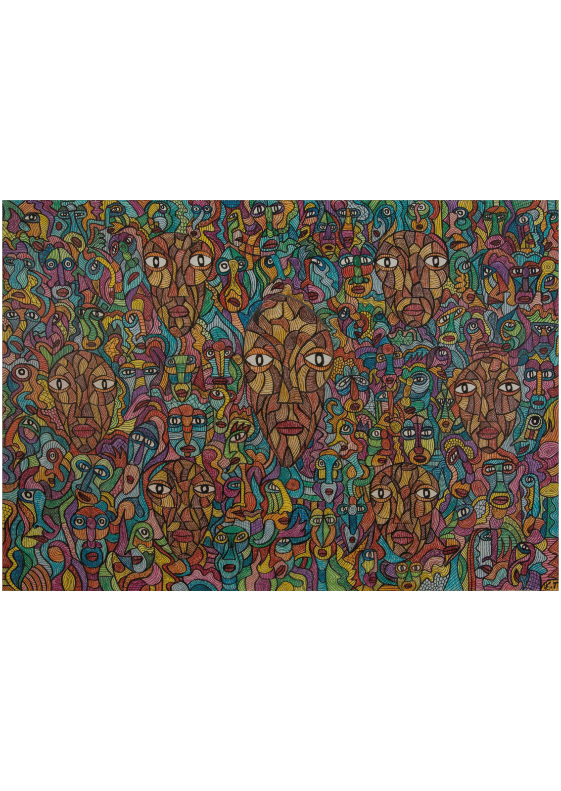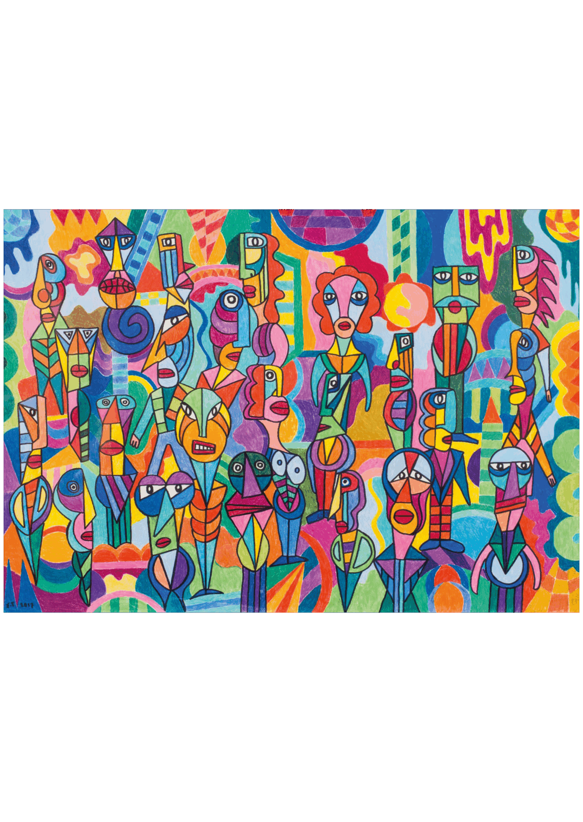Faces in cubistic style, with a strong link to African art, play a big role in his work. Faces in trees, faces that jump out of telephones and shout in somebody’s ear in Arabic, all this surrealistic madness appears in his work.