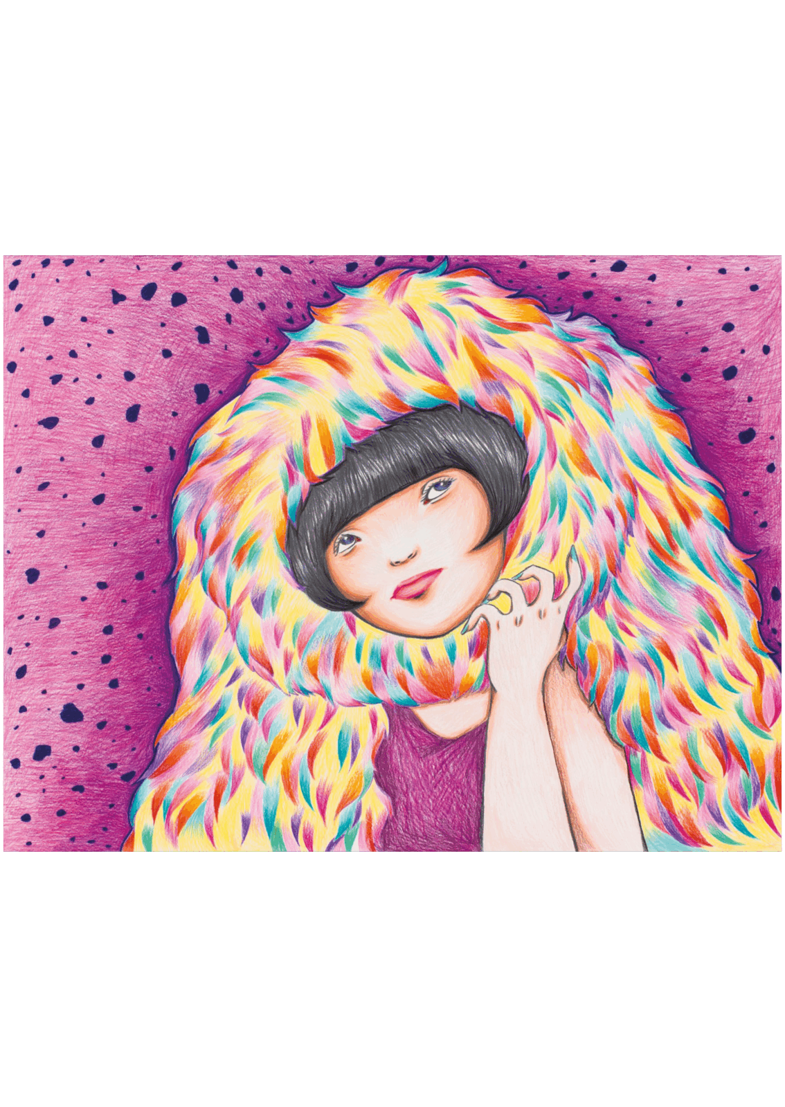 In February 2017 Sharon gets a place at Atelier Herenplaats where she can develop her skills as an artist four days a week. Here she works steadily on her oeuvre, colored pencil drawings that have been worked out in detail. She draws girls and women, men do not appear in her work. The very precise way of displaying the hair and skin is very special. Some girls get a horrible expression by drawing the eyes a little skewier than normal, the alienation turns them into horror-like drawings.